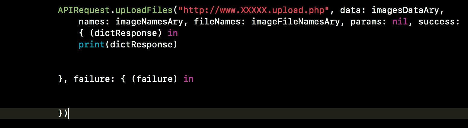 裡面的$FILES["file"]參數就是對應iOS裡面的fileNames命名,所以如果後台參數是$FILES["cba"],你iOS的fileNames就要變成["cba[]"],不然會上傳失敗喔,這邊是使用圖片作為範例,其他檔案也是可以通吃(mp4、pdf),到這邊就完成基本會用到的Alamofire功能了。